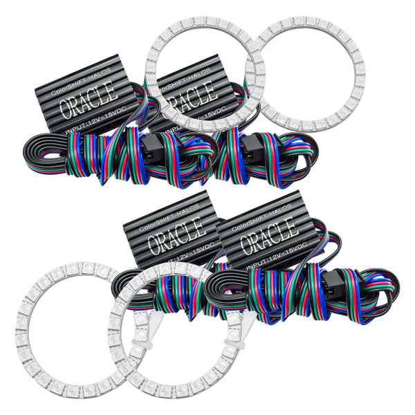 The ColorSHIFT Halo Kit can produce any color including whites from 3000K-15000K with the push of a button. This allows the user to dial-in the exact color rings that they desire. These 3-Chip 5050 SMD rings are BRIGHT, and for some they may be too bright, that is why (for the first time) the user has full control over the ring brightness. ORACLE SMD or "Surface Mount Diode" Halos utilize an advanced type of LED chip that can produce brilliant light output while only consuming a small amount of power. The SMD chips are installed onto a CAD designed 6-layer PCB (Printed Circuit Board) which is very sturdy and will not break if pressured. The PCB can easily be mounted to a headlight housing using the pre-installed 3M adhesive tape backing.
