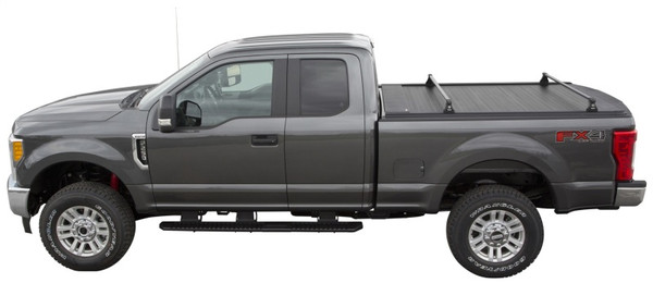 UltraGroove Metal™ is a retractable tonneau that makes it easy to attach nearly any Thule® or Yakima® rack to carry bikes, kayaks, cargo baskets and more. It offers truck owners the metal look with heavy-gauge aluminum panels and a tough, powder-coated, matte-black surface. With or without racks, UltraGroove Metal is a great-looking retractable tonneau that’s incredibly easy to use. It opens quickly with just a turn of the lock knob and closes just as easily with a pull on the built-in strap. " The built-in RES™ rail expansion system can quickly be outfitted with racks to carry your recreational gear.