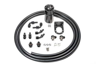 Universal single catch can kit with hoses and fittings for 6AN (3/8 inch ID) hose. Comes with a universal mounting bracket, a variety of adpater fittings and 10 feet of hose for installation into any vehicle.