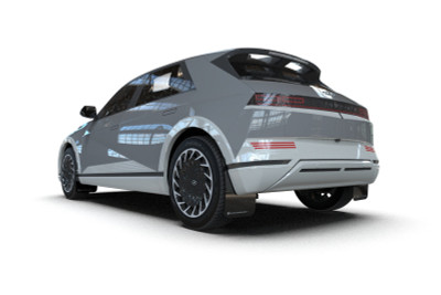 Rally Armor 2025 Hyundai Ioniq 5 PE Blk Mud Flap w/Light Blue Battery Logo - MF137-BAT-BLK-PBL