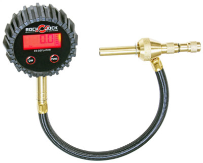 The RockJock(R) exclusive EZ-Deflator Pro is the next generation of tire deflators! Features include an illuminated digital gauge, extended tip for easy use on beadlock wheels and a light on the back so you can find your valve stems in the dark! Hard plastic storage case included.