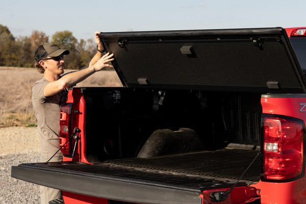 Full-Bed Access: With Rough Country's Tri-fold Flip-up Bed Cover, you can conveniently flip up the cover, allowing full-bed access without the hassle of removing the cover.