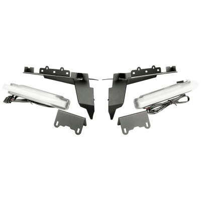 Modifying JL flares for off-road is easy and the look is nothing short of heroic with the Rugged Ridge Fender Chop Brackets. By removing the bulky factory fender light assembly, you'll have greater clearance for oversized tires with nothing to get between you and that next obstacle. Sturdy steel chop brackets install easily and lend support for the front of the factory fender flare, adding a fearlessly aggressive new look. And since Jeeps don't live solely off-road, radical dual-output DRL tubes provide a cool white running light by day that turns a vivid amber with your vehicles turn signals. Chop Brackets come in pairs, for Rubicon models, and feature a matte black powder coat finish that blends seamlessly with the factory flare finish. All installation hardware and instructions are included for a hassle-free install in record time.