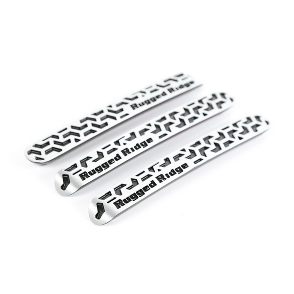 Bring a tasteful off-road accent to your JK with Rugged Ridge Elite Door Handle Inserts featuring a cool tread-inspired inlay. Each insert is made from lightweight cast aluminum with a lustrous brushed finish and black recesses giving an eye-catching custom touch to your rig. Kit Includes 3 inserts, for both doors and rear tailgate. These inserts install with ease with double-sided automotive tape. No sharp edges result in a comfort-fitting install.