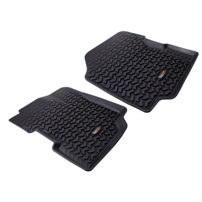 Need an affordable solution to keep the cabin floors of your Jeep looking factory fresh? Try Rugged Ridge s All Terrain Floor Liners! Made of a durable OE-quality thermoplastic material that can withstand the rigor of daily abuse; each liner is perfectly contoured to your vehicle s floor for precise secure fitment (floor hook attachment where applicable). The raised lip captures all spills; water and debris keeping your interior pristine. Features a chevron shape patented deep tread technology. Patent 8;163;369; D627;285; 2;699;641