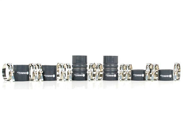 Don't let a stock intercooler boot ruin your day, at the track or on the strip. Upgrade your 7.3L today with Sinister Diesel Upgraded Intercooler Charge Pipe Silicone Boots and Clamps. Features:Heavy Duty High Temperature Four Ply Silicone Boots, Every boot/hose that Sinister manufactures is designed to exceed factory specifications., Won't split or crack like the factory rubber boots can., Hot side and cold side Sinister Diesel brand hoses., Kit Includes - (6) Four Ply Silicone boots and (12) Stainless Steel Spring Clamps, 300 Series Stainless Steel Spring Clamps., Burst rating of 400psi!!