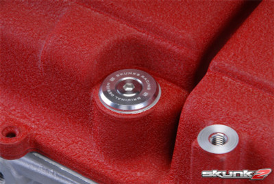 Skunk2 is proud to introduce the most unique, low-profile dress-up hardware you’ve ever seen. An original design, Skunk2’s Low Profile Valve Cover Hardware kits are the only ones designed specifically for K-series valve covers. Low Profile Valve Cover Hardware kits are a comprehensive design, featuring specially engineered “standoffs” that include provisions for Skunk2’s unique, low-profile washers and flush-mounted, stainless steel hardware. Each kit includes 10 low-profile washers and 10 flush-mounted, stainless steel bolts. All kits are compatible with OEM valve covers as well as OEM and most aftermarket spark plug wire covers. Each OEM-grade standoff replaces the factory mounting studs and is secured to factory specifications. No other valve cover kit available does this. A series of Viton O-rings and the appropriate standoff extensions are included with each kit to ensure a leak-free seal and OEM fit and finish. Only Skunk2’s 36-piece Low Profile Valve Cover Hardware kits include washers and standoffs for all six mounting points as well as for fastening most spark plug wire covers into place. And only Skunk2 offers the most low-profile washers and bolts around, measuring more than 75% thinner than the factory washer and nut combination. Skunk2’s Low Profile Valve Cover Hardware kits are manufactured from 6061-T6 aluminum and are available for K-series engines in black, blue, gold, purple, red, and clear hard-anodized finishes, and feature Skunk2’s classic, laser-etched logo. Skunk2 employs the same design and manufacturing methods for all of its Fine Tuning accessories as it does for its top-of-the-line racing components. Skunk2’s Low-Profile Valve Cover Hardware kits help put that unique finishing touch onto the vehicle you work so hard to make perform well, and we make every effort to ensure that their style is consistent with our rich racing heritage.