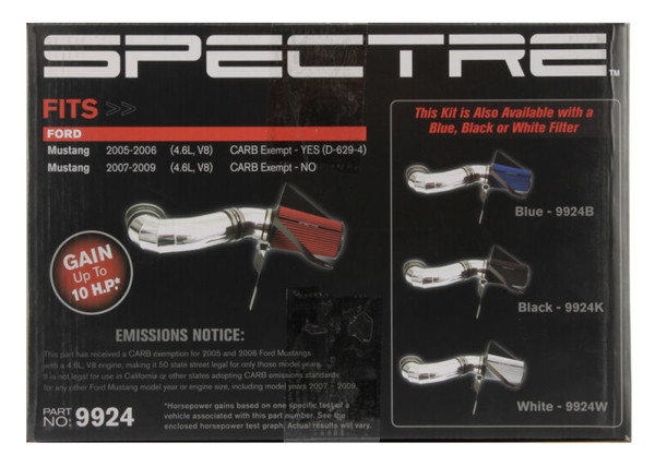 Spectre 05-09 Ford Mustang GT V8-4.6L F/I Air Intake Kit - Polished w/Red Filter - 9924