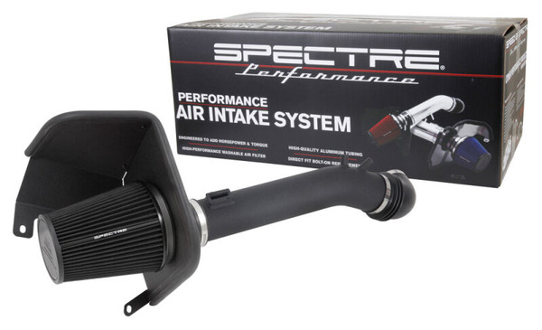 Spectre air intake systems are designed to get more horsepower and torque from your vehicle while working to protect your engine from harmful debris. This air intake system comes with a black washable, reusable low restriction Spectre air filter, black powder coated aluminum intake tube and a black powder coated steel heat shield to help prevent heated engine air from entering the intake inlet. Spectre air intakes come with the necessary rubber boots, velocity stack, stainless steel clamps and all necessary hardware for an OE fit and finish.