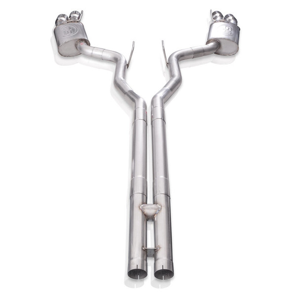 2018+ Mustang GT 5.0L, 3" Catback Dual Exhaust with H-pipe. Improve sound and performance on your Mustang GT with this Redline catback exhaust from Stainless Works. Redline series, designed to get the most aggressive sound out of your GT, we've designed these mufflers to maximize the volume and tone of that 5.0L V8 while still eliminating any drone in the cabin. All tubes are CNC mandrel bent for optimal flow. Made from 304 stainless steel for maximum corrosion resistance. This is a quad tip exhaust, exiting through our 4" slash cut conical double wall polished tips Includes hangers and clamps. This system has a performance connection that mates with Stainless Works headers. This system is designed for vehicles without Active Valve Performance Exhaust. Mill finish, All TIG welded for strength and durability. These kits come with a lifetime warranty and proudly made in the USA. This system is designed for standard vehicles without the valve. Not confirmed to fit convertibles.