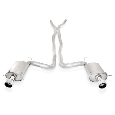 2004-07 Cadillac CTS-V performance 304 stainless steel exhaust system with X-Pipe for use with factory manifolds. 3" CNC Mandrel bent exhaust. Slip joint connectors ensure leak proof seal, dual chambered turbo mufflers deliver maximum performance and deep aggressive sound. 4" polished slash cut rolled edge tips included.