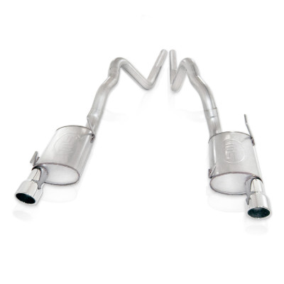 2007-10 Shelby GT500 3" catback exhaust system includes 3" inlet, 2-1/2" core, 3" outlet turbo chambered mufflers, 4" mirror-polished tips, 3" tailpipes, adapter stubs. Includes Accuseal clamps and hangers for installation. This is a performance connection system designed to fit SW headers for maximum performance.