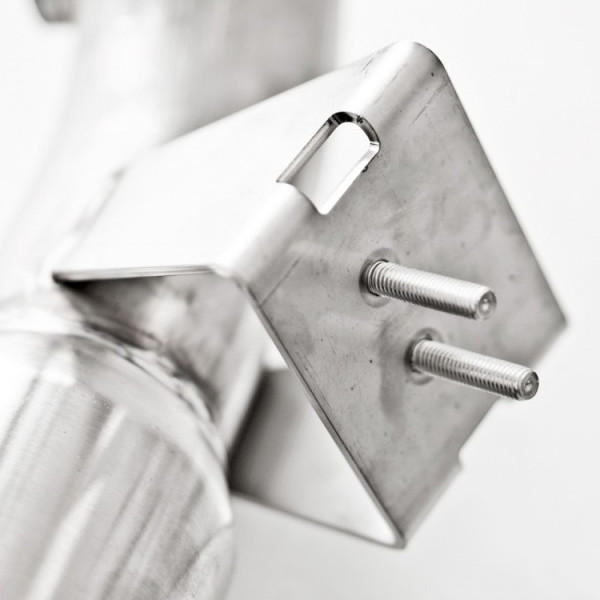 2013-17 Ford Focus ST 2.0L 3" catted downpipe. Includes hangers and flex joint. This 3" downpipe is fully 3" front to back with V-Band flange at the turbo and two bolt flange at the catback factory connection point. Works with OEM or Stainless Works catback (FC13CB-RT, FC13CB-WT)