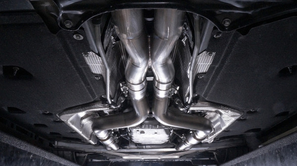 2016 thru 2017 Cadillac CTS-V Sedan Headers featuring port-matched flanges and mandrel-bent 2" primaries and 3" catted leads and x-pipe. Our Cadillac CTS-V Sedan systems include adapters for both Factory and Performance connections, making it easy to install whether you have the stock axleback or our Stainless Works Performance Axleback Systems.