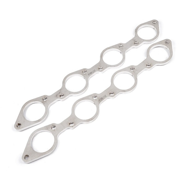 Big Block Chevy round port header exhaust flanges. These flanges come as a pair and are designed for 2-1/8" primaries, laser-cut from heavy-duty 3/8" thick 304 stainless steel for superior resistance to warping from high heat, and comes with a limited lifetime warranty.