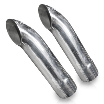 Pair of Short turn down tips, with 3" ID inlet, 3" diameter body with an overall length of 11" Can be clamped or welded in place. Made from 304 stainless steel for maximum corrosion resistance. Hand mirror polished finish. The quality of our tips is far superior to the less expensive tips on the market. These kits come with a lifetime warranty and proudly made in the USA.