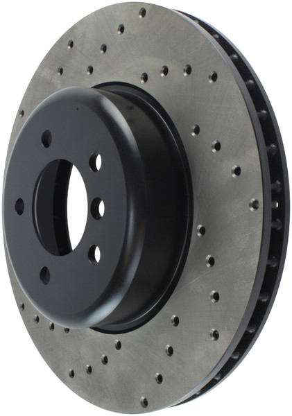 StopTech Drilled Sport Rotors are 1-piece direct replacement brake discs for factory brake systems and stock calipers that look great behind your wheels – and offer significantly improved braking performance. The unique cross-drilling aids with heat and brake dust dispersal, prevents glazing of the pads, adds bite and improves wet and dry braking performance. Built to last, the black e-coating provides protection from corrosion and the high carbon metallurgy (in most applications) offers quieter operation, better crack resistance and increased performance.