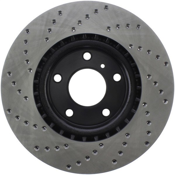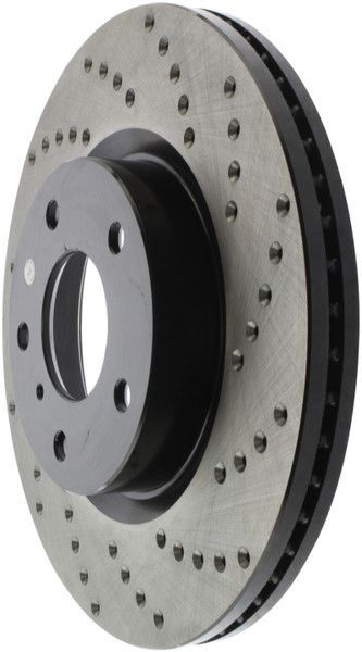 StopTech Drilled Sport Rotors are 1-piece direct replacement brake discs for factory brake systems and stock calipers that look great behind your wheels – and offer significantly improved braking performance. The unique cross-drilling aids with heat and brake dust dispersal, prevents glazing of the pads, adds bite and improves wet and dry braking performance. Built to last, the black e-coating provides protection from corrosion and the high carbon metallurgy (in most applications) offers quieter operation, better crack resistance and increased performance.