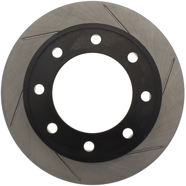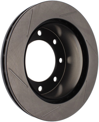 StopTech Slotted Sport Rotors are 1-piece direct replacement brake discs for factory brake systems and stock calipers that look great behind your wheels – and offer significantly improved braking performance. The unique slotting aids with heat and brake dust dispersal, prevents glazing of the pads, adds bite and improves wet and dry braking performance. Built to last, the black e-coating provides protection from corrosion and the high carbon metallurgy (in most applications) offers quieter operation, better crack resistance and increased performance.