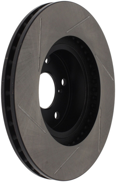 StopTech Slotted Sport Rotors are 1-piece direct replacement brake discs for factory brake systems and stock calipers that look great behind your wheels – and offer significantly improved braking performance. The unique slotting aids with heat and brake dust dispersal, prevents glazing of the pads, adds bite and improves wet and dry braking performance. Built to last, the black e-coating provides protection from corrosion and the high carbon metallurgy (in most applications) offers quieter operation, better crack resistance and increased performance.