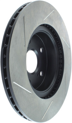 StopTech Slotted Sport Rotors are 1-piece direct replacement brake discs for factory brake systems and stock calipers that look great behind your wheels – and offer significantly improved braking performance. The unique slotting aids with heat and brake dust dispersal, prevents glazing of the pads, adds bite and improves wet and dry braking performance. Built to last, the black e-coating provides protection from corrosion and the high carbon metallurgy (in most applications) offers quieter operation, better crack resistance and increased performance.
