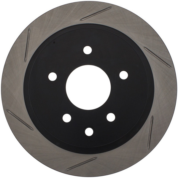 StopTech Slotted Sport Rotors are 1-piece direct replacement brake discs for factory brake systems and stock calipers that look great behind your wheels – and offer significantly improved braking performance. The unique slotting aids with heat and brake dust dispersal, prevents glazing of the pads, adds bite and improves wet and dry braking performance. Built to last, the black e-coating provides protection from corrosion and the high carbon metallurgy (in most applications) offers quieter operation, better crack resistance and increased performance.