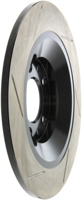 StopTech Slotted Sport Rotors are 1-piece direct replacement brake discs for factory brake systems and stock calipers that look great behind your wheels – and offer significantly improved braking performance. The unique slotting aids with heat and brake dust dispersal, prevents glazing of the pads, adds bite and improves wet and dry braking performance. Built to last, the black e-coating provides protection from corrosion and the high carbon metallurgy (in most applications) offers quieter operation, better crack resistance and increased performance.