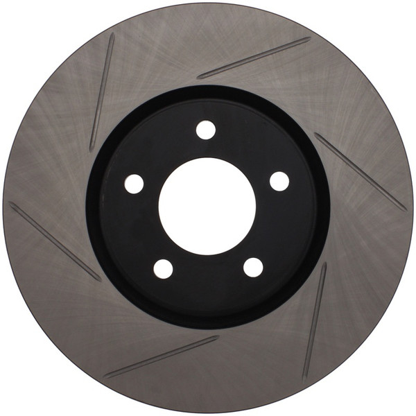 StopTech Slotted Sport Rotors are 1-piece direct replacement brake discs for factory brake systems and stock calipers that look great behind your wheels – and offer significantly improved braking performance. The unique slotting aids with heat and brake dust dispersal, prevents glazing of the pads, adds bite and improves wet and dry braking performance. Built to last, the black e-coating provides protection from corrosion and the high carbon metallurgy (in most applications) offers quieter operation, better crack resistance and increased performance.