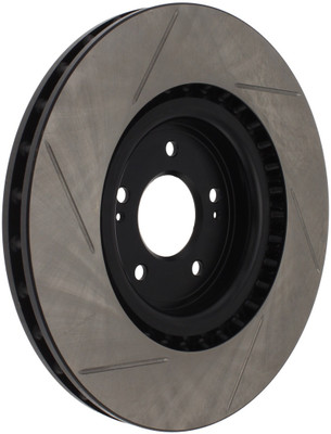 StopTech Slotted Sport Rotors are 1-piece direct replacement brake discs for factory brake systems and stock calipers that look great behind your wheels – and offer significantly improved braking performance. The unique slotting aids with heat and brake dust dispersal, prevents glazing of the pads, adds bite and improves wet and dry braking performance. Built to last, the black e-coating provides protection from corrosion and the high carbon metallurgy (in most applications) offers quieter operation, better crack resistance and increased performance.