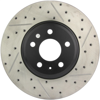 StopTech Drilled Sport Rotors are 1-piece direct replacement brake discs for factory brake systems and stock calipers that look great behind your wheels – and offer significantly improved braking performance. The unique cross-drilling aids with heat and brake dust dispersal, prevents glazing of the pads, adds bite and improves wet and dry braking performance. Built to last, the black e-coating provides protection from corrosion and the high carbon metallurgy (in most applications) offers quieter operation, better crack resistance and increased performance.