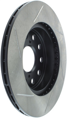 StopTech Slotted Sport Rotors are 1-piece direct replacement brake discs for factory brake systems and stock calipers that look great behind your wheels – and offer significantly improved braking performance. The unique slotting aids with heat and brake dust dispersal, prevents glazing of the pads, adds bite and improves wet and dry braking performance. Built to last, the black e-coating provides protection from corrosion and the high carbon metallurgy (in most applications) offers quieter operation, better crack resistance and increased performance.