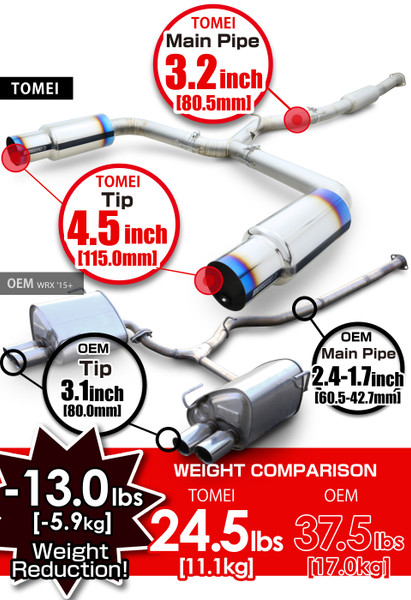 Tomei Expreme titanium full exhaust fits the 2011-2021 Subaru STI and WRX. This dual exit titanium exhaust weighs in at 24.5 pounds for a 13lb savings over stock! Most titanium exhausts are extremely expensive, but Tomei has been able to bring the costs down to give you a high quality product with an unbeatable price.