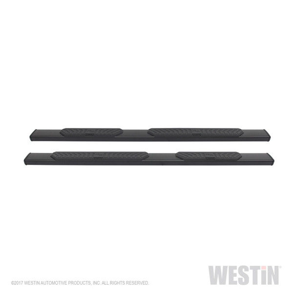 Westin R5 Nerf Step Bars have 5 inch wide step area with a unique molded polymer step pad design. R5 Nerf Step Bars are rocker panel mounted and include injection molded bracket covers for a full and stylized appearance. R5 LED Light Kit upgrade is available, sold separately.