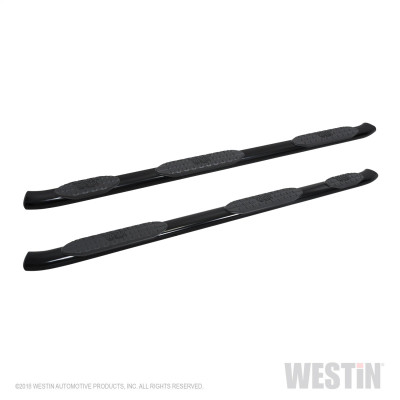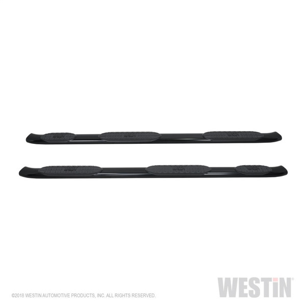 Westins Pro Traxx 5 Wheel-to-Wheel Oval Tube Step Bars come complete with a driver and passenger side step and a vehicle specific mount kit so there's only one part number to order. The wheel-to-wheel length steps include a third step beyond the cab for easy access to the truck bed. Each step features 3 step areas per side for multiple boost-up points. The step pad beyond the cab is a smaller step pad that features the Westin brand design that matches the other two full-sized step pads.