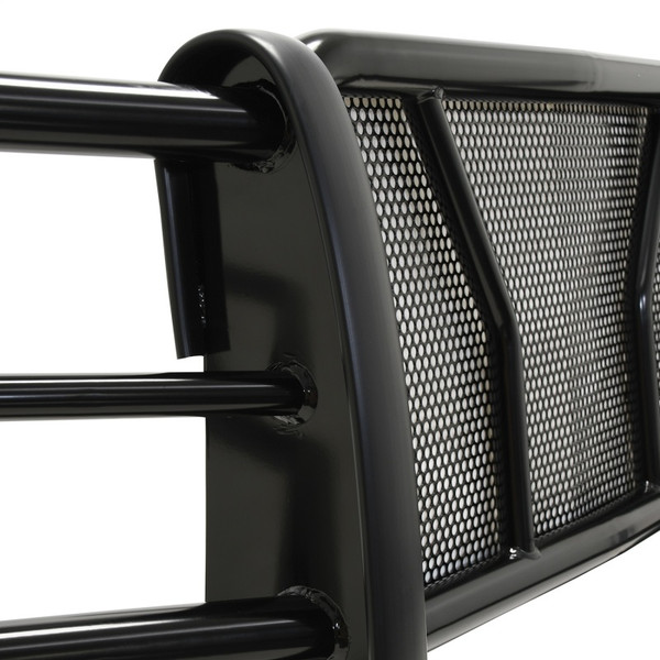 The HDX Grille Guard is the ultimate in extreme truck gear. Its a fully welded 1-piece grille guard that features full wraparound wings made of heavy duty 2" diameter tube. Uprights are finished and protected with extra wide rubber that is 1/8" thick and 2 3/4" wide resulting in a solid clean look. The full punch plate grille protects the vehicles grille area. HDX Grille Guards are available in stainless and black powder coat finish.