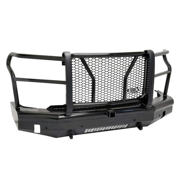 Westins HDX Bandit Bumper combines a heavy duty diamond plate steel bumper constructed of schedule 40 steel pipe with a stylish grille guard featuring 2in. diameter outer wraparound wings and 2 3/4in. wide upright rubber strips. Designed to protect headlights, grille, hood and front fenders from road hazards, debris and wildlife damage. Features a stylish metal honeycomb mesh screen, which allows maximum airflow to the intercooler or radiator area while accenting the front end styling with a clean and rugged look. Removable mesh screens allow for factory camera and adaptive cruise control options available on some late model Ford applications. HDX Bandit Bumper includes a built-in 2in. receiver hitch and (2) heavy duty 9,500 lbs bow shackle mounts, capable of delivering multiple towing options. Compatible for factory fog lamps or LED post mount lights. In addition, some late model Ram and Chevrolet applications feature provisions for factory parking sensors. Bolt-on installation with hardware and mounting brackets included. Available in black powder coat finish.