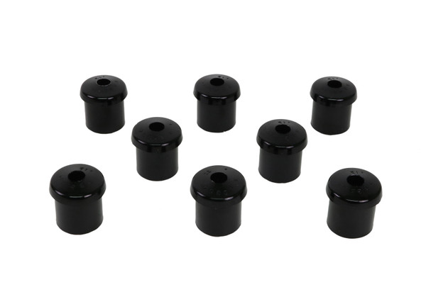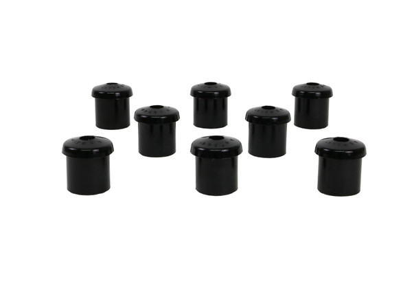 A critical service item for any leaf sprung vehicle. High kilometres and heavy load carrying causes excessive wear on rubber bushings. Whiteline's signature black bushings are made tough and offer outstanding abrasion resistance, high load bearing capability (4WD's, utes and towing), flexibility, increased tensile strength and chemical resistance to oil, grease, ozone and weathering.