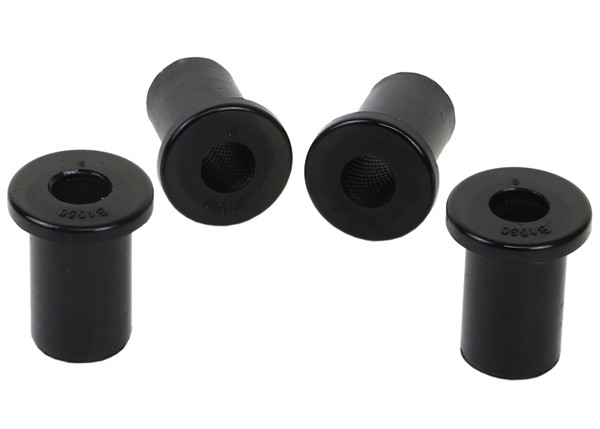 A critical service item for any leaf sprung vehicle. High kilometres and heavy load carrying causes excessive wear on rubber bushings. Whiteline's signature black bushings are made tough and offer outstanding abrasion resistance, high load bearing capability (4WD's, utes and towing), flexibility, increased tensile strength and chemical resistance to oil, grease, ozone and weathering.