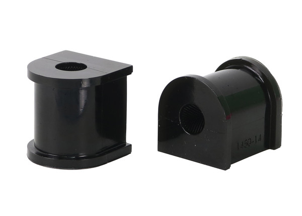 Designed to fit a 14mm sway bar. Whiteline's sway bar mount bushings not only boasts the latest in bushing material technology but feature a knurled ID specifically designed to retain grease. Backed up by a Limited Lifetime Warranty. Whiteline bushings are made from the latest highest quality synthetic elastomer and designed to synchronize your suspension system for optimal safety, handling, performance, ride quality, longevity and reduced maintenance. They are the most positive link between your vehicles body, springs, struts, arms, bars and shocks.