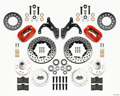 Wilwood Forged Dynalite Front Kit 11.00in Drill-Red 69-70 Impala Drum/Disc 69-82 Vette - 140-12040-DR
