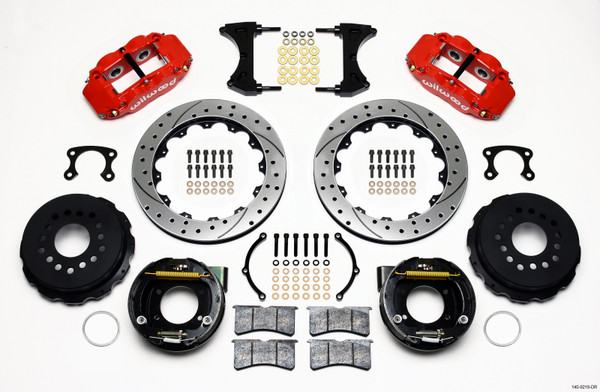 Wilwood Narrow Superlite 4R Rear P-Brk Kit 12.88in Drill Red Big Ford New Style 2.50in Offset - 140-9219-DR